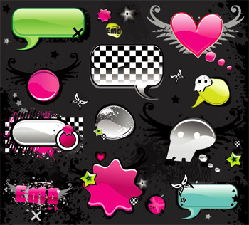 eps format, keyword: cute, dialogue bubbles, crystal, wings, skulls, radio, gear-shaped, butterflies, astrocytes, buttons