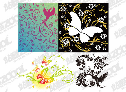Location: Home > Vector > Vector Flower > 4, bird or butterfly pattern combination of vector material