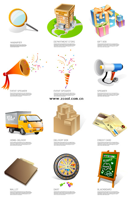 ai formats, including jpg preview, keyword: Vector icons, magnifying glass, shops, gifts, packaging, speaker, public notices, festivals, trucks, freight, bank cards, credit cards, ATM cards, wallet, payment, Darts, subscript target, blackboards, bulletin boards, vector material