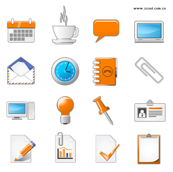 eps format, including jpg preview, keyword: Vector icon, calendar, coffee cup, reviews, laptop, mail, email, clock, time, phone book, paper clip, host, light bulbs, nails, work permits, identity, document , pencil, statistics, curves, check mark, White, vector material